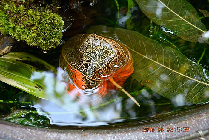 きれいに食べ尽くされ、筋だけになった鬼灯。取り出したのは8月3日。