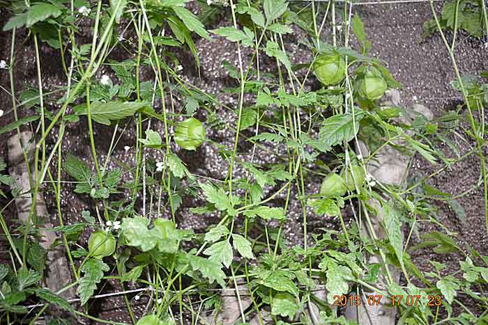 3)フウセンカズラは、今年はたくさんの種を一つのプランターに蒔いた。その結果がでて、たくさんの花を付け、実を付けている〜