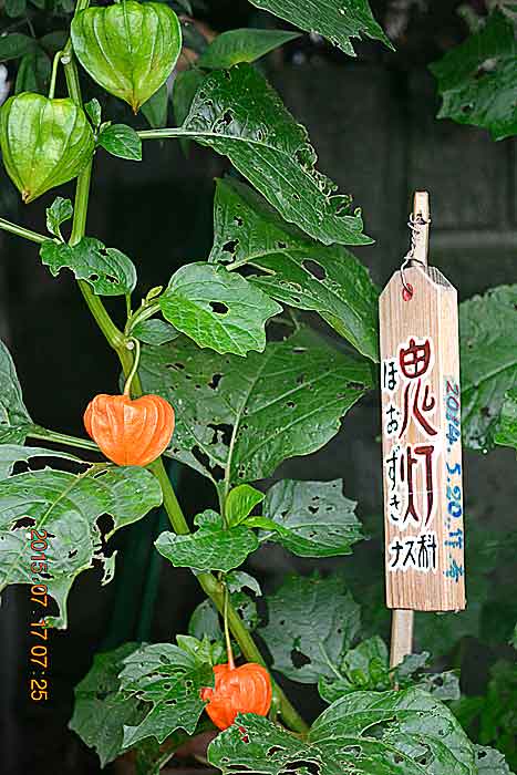 1)3年前実だけを買って楽しんだホオズキの種を植えて、ようやく今年初めて花を咲かせ色づいてきたホオズキ。同じくプランターに植えたホオズキは大きく育っているが花を付けていない。