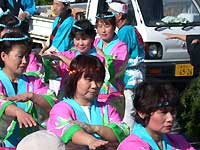 神輿は、通りの浜に出る交差点のところに止まって、小さな環を作って踊りが始まっていた。丁度、いいのや民宿(以前)のおばあさんが玄関先に出て見ておられた。「こんにちわ、、、」「健ちゃん、久しぶりだね。元気だったかいね」「はい、、、久しぶりですね」「脚立を貸しましょうか、、、」「、、、二階を貸してもらえませんか」「そうだね、どうぞ」私は急いで二階に上がって窓からその様子を健ちゃんと二人で撮った。動き始めていて、デジカメでのシャッターチャンスは2枚ほどしか撮れなかった。これはデジカメの欠点である。