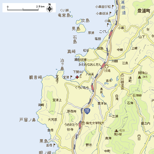 - 室津海岸は立派な鳴り砂の浜である。最新情報(山口大学理学部地球科学教室の宮田教授)でも確認された。