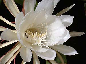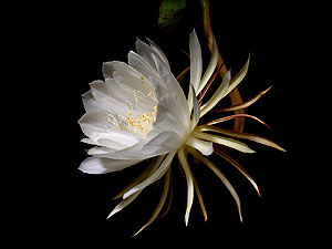 月下美人が咲き始めるのは、いずれも夜になった7時くらいからである。わたしのは8時ころから一気に開花してくれた。この時間は、誰の月下美人も同じようである。それなら、満月や新月に咲くというのも何かあるかもしれない。
