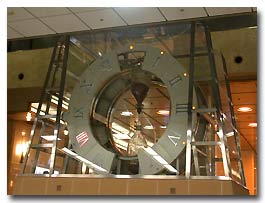 電車に乗ると、新大阪を過ぎて3つ目が梅田であった。梅田で降りて、駅の案内板を見ながら砂時計を探した。大阪コンコースという文字が目に入ってきた。それにしたがって人通りの多い中を急いだ。後10分くらいで回転する。梅雨の蒸し暑さで汗が出た。後少しのところで間に合った。